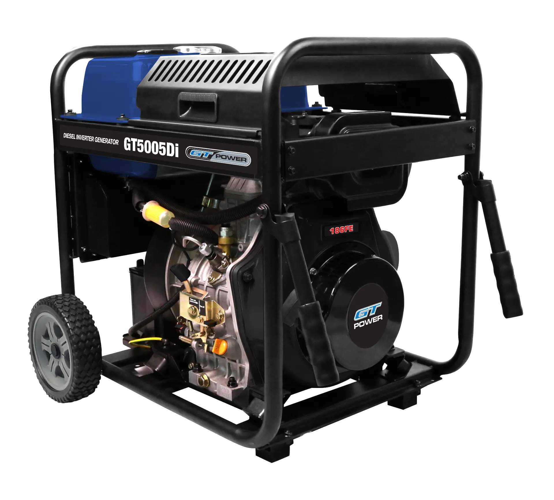 Driven by a heavy-duty 498cc diesel engine, the GT5005Di features a 16L fuel tank for extended runtime, electric start for easy ignition, and a sound-insulated casing that keeps noise to a minimum. The integrated digital display allows you to monitor voltage, runtime, and power output at a glance.