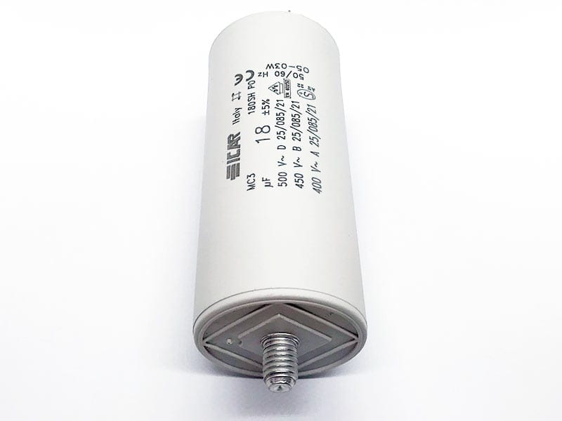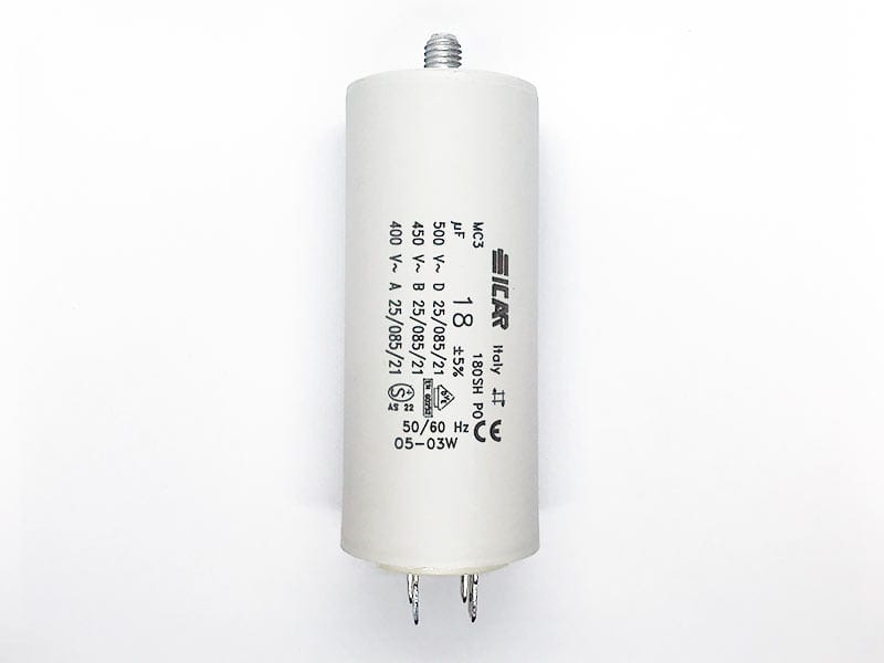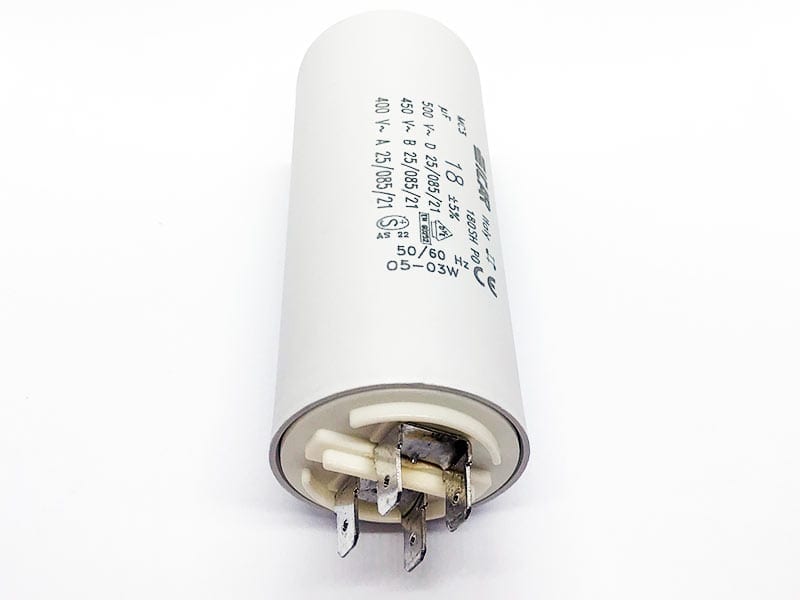 Motor run capacitors are resin filled with plastic case for light and economical design and have push on terminals for simple installation. Suitable for continuous operation in a wide range of applications with a temperature range from -25 to +85 degrees in 50/60Hz. Applications include pumps, electric motors, air conditioning.